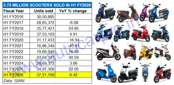 Powered by its best-ever monthly sales of 733,391 units in September 2025, the Indian scooter industry, which hit record wholesales of 6.85 million units in FY2025, seems well set for another mega fiscal in FY2026. Halfway into the current fiscal year, as per SIAM wholesales data, scooter makers have clocked sales of 37,21,709 units, up… Continue reading Honda Scooter Market Share Falls to 39%, TVS’ Rises to 29% in First-Half FY2026