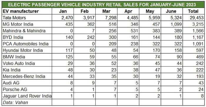 Electric PVs: H1 2023 sales surpass CY2022 retails, Tata Motors has a 77% share, MG Motor India 8%, M&M checks in