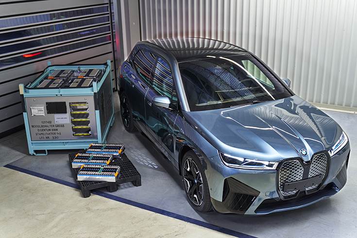 From next year BMW Plant Leipzig will run all three stages of the high-voltage battery production process: cell coating, module production and high-voltage battery assembly. E-component production capacity has been steadily increasing since 2021, and at present battery cells are coated and assembled into modules there. One in three battery modules for fully electric vehicles by the BMW Group already comes from Leipzig today, and a battery assembly system is currently under construction, expected to go on stream early next year. The BMW Group is investing up to 1 billion euros in extending e-component production at Leipzig.