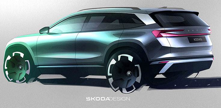 A week ahead of its world premiere on October 4, Skoda Auto has released exterior sketches of the new-generation Kodiaq, revealing a powerful and emotive design.