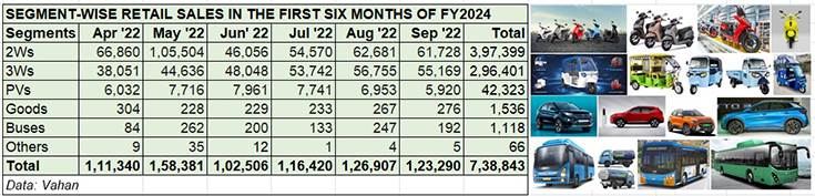 India EV Inc is headed for record sales of 1.5 million sales in FY2024. While two-wheelers (397,399 units) account for 54% of EV industry sales in H1 FY2024, three-wheelers (296,401 units) have a 40% share.