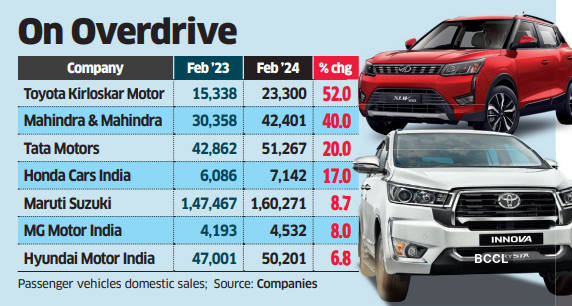 As per industry estimates, passenger vehicle sales last month rose 11.3% from a year earlier to 373,177 units, the highest ever for the month of February. Those were also the third-highest monthly sales on record, behind 3,94,500 units the previous month and 3,91,811 units in October 2023.