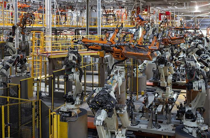 For the press shop, 54 new stamping dies for body parts were required and model specific blanking dies were made for panels. The welding work area where various parts come together, is mostly automated with robots and camera detection capabilities for defects. Ninety new robots were added out here, and the existing 468 robots were modified as well. Since there are no forklifts on the shop floor, an overhead conveyor system is used to transport parts, and the 473 carriers also underwent modifications along with grippers and other tools.