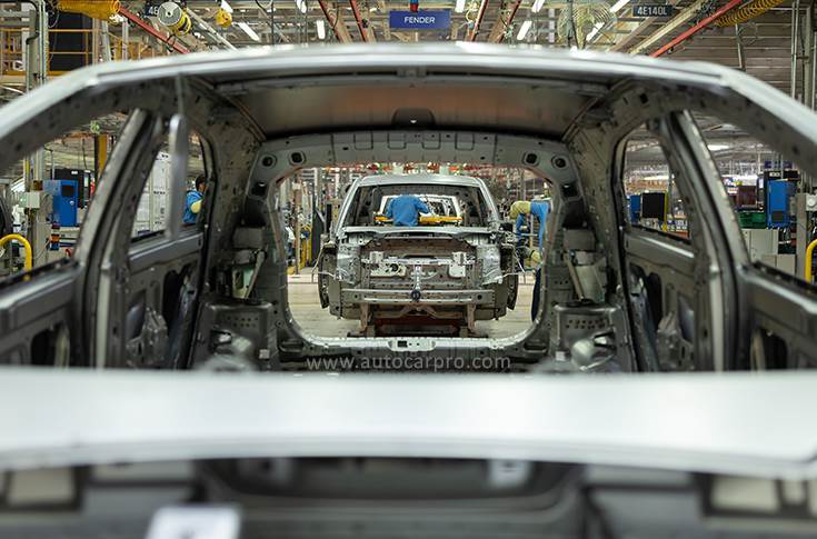 For a visitor, the first sight that welcomes you in the factory is a convoy of body shells moving slowly towards the assembly area. That step comes much later.