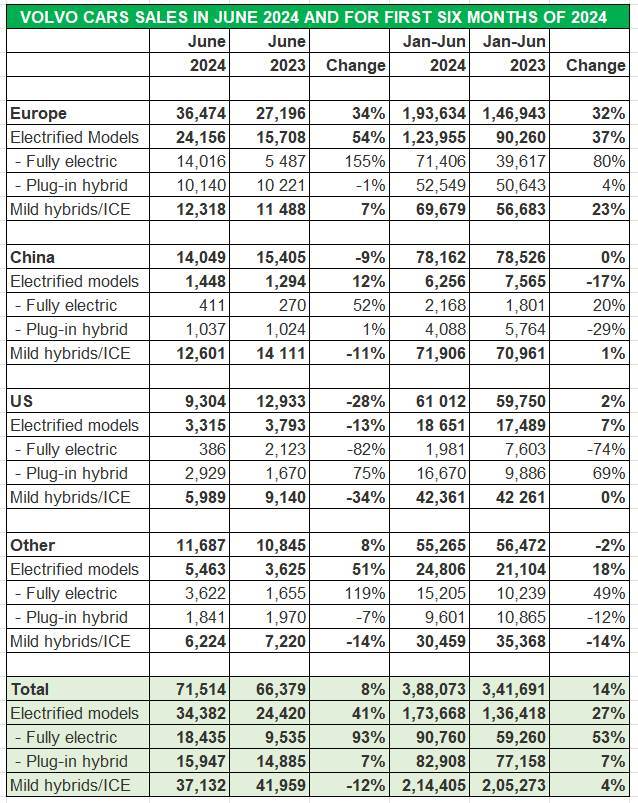Europe continues to be the best market for the Swedish carmaker – the 193,634 units were up 32% YoY and accounted for 50% of total sales in H1 2024. Also, Europe saw deliveries of 123,955 electrified cars and SUVs – this is a 37% YoY increase and 71% of global sales of Volvo Cars’ BEVs and PHEVs in the first six months of this year.