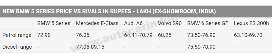 BMW India is offering the new 5 Series in a sole 530Li variant. Considering its Rs 72.90 lakh starting price, the 5 Series costs about Rs 3 lakh less than its primary competitor, the Rs 76.05 lakh Mercedes E200. In fact, the 5 Series’ price will overlap with the 6 Series GT, which is currently priced between Rs 73.50 lakh-78.90 lakh.