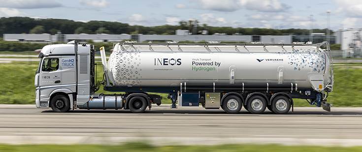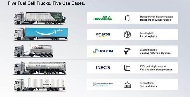 The five semi-trailer tractors will be used in various long-haul applications throughout the trial period. Amazon will use the GenH2 Truck in its logistics operations in Germany, Air Products for the transport of cylinder gases, Wiedmann & Winz for sea containers, Holcim for building materials logistics, and VERVAEKE – the logistics company of INEOS – for PVC and vinyl transportation.