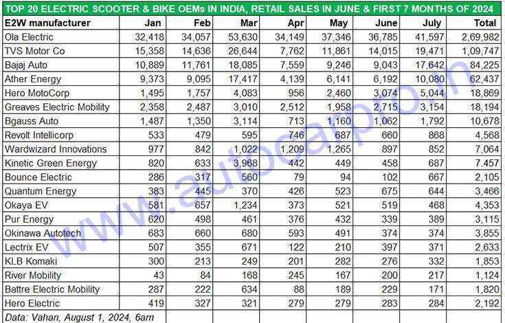 OLA ELECTRIC – July 2024: 41,597 units, up 114%