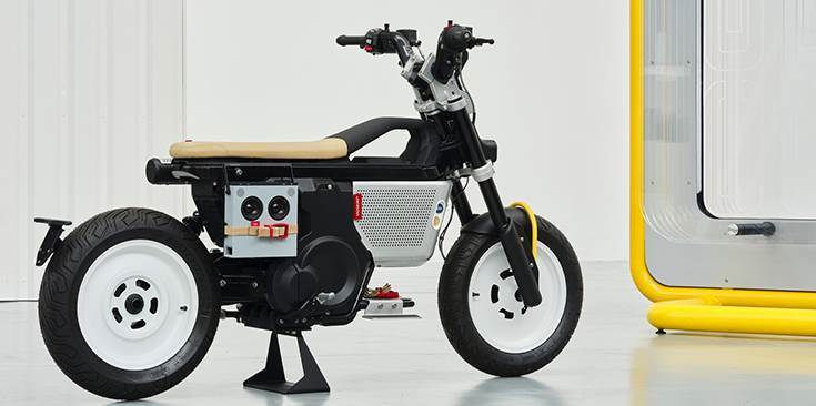 The custom made-in-Austria EV has a unique, futuristic design along with various functional ‘retro’ elements, which were designed in a modern, fresh way and with a focus on a young target group. For example, the musical integration of the ‘OB-4 Magic Radio’ from ‘Teenage Engineering’ underlines the young and creative philosophy of custom bikes. The ‘electric exhaust’ serves as a practical style element and visual highlight. This offers space for an umbrella. Design elements such as the running board with skateboard grip tape reflect the sporty, urban eParkourer style. What’s more, the custom bike’s 3.6-metre tall packaging is part of the overall concept.