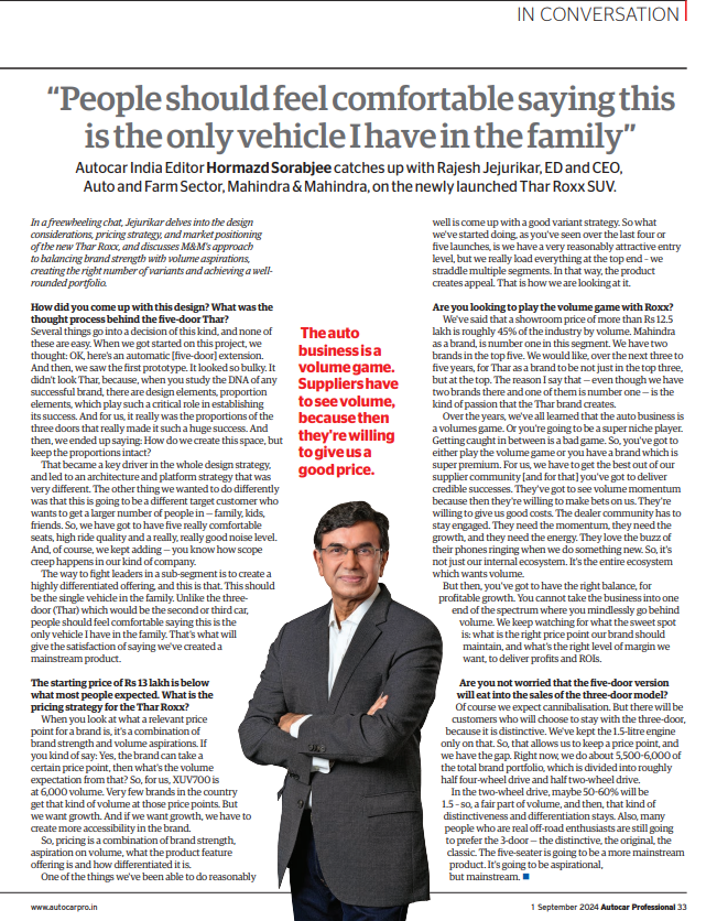 We also look at Mahindra & Mahindra, which has its own turnaround story. The maker of Scorpio and XUV700 recently unveiled Thar Roxx — a lifestyle SUV — to break into the mainstream, mid-size SUV segment. We analyse whether M&M will be able to sustain its momentum with Thar Roxx and how Rajesh Jejurikar, ED and CEO of M&M’s auto business, intends to make this model a success.