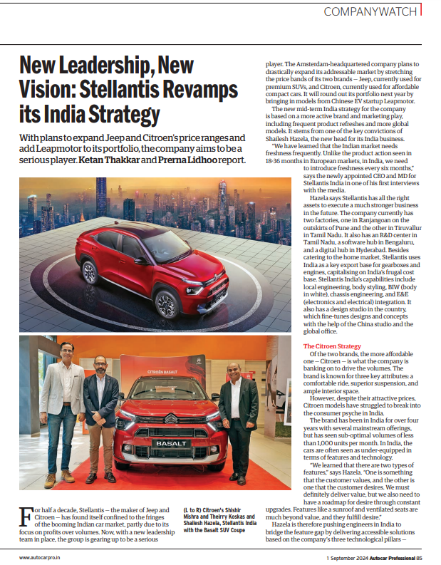 We also have stories on Sonalika Group’s Rs 1,000 crore bet on EVs and its plans for the electric quadricycle market. We also look at how Stellantis India wants to revamp its India strategy under new MD and CEO Shailesh Hazela.
