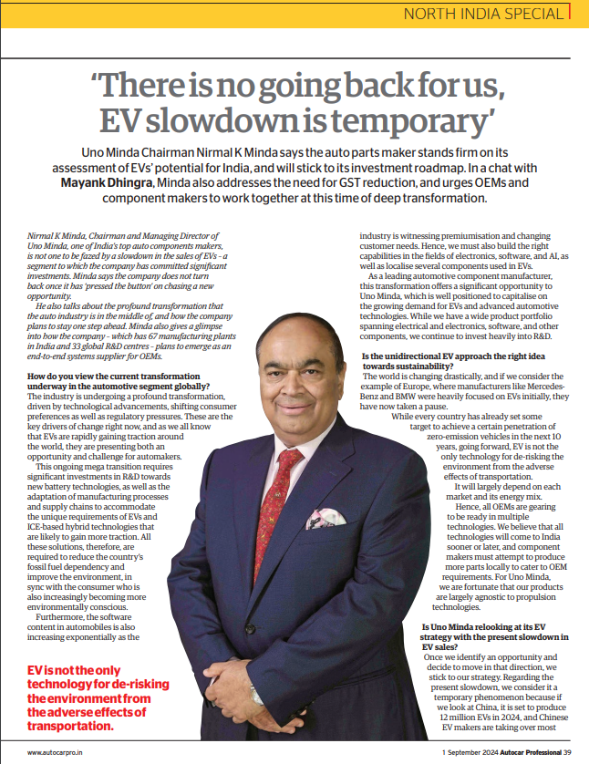 This is also our North India special, and we have an interview with N K Minda, the Chairman of Uno Minda, on the company’s future vision and growth plans.