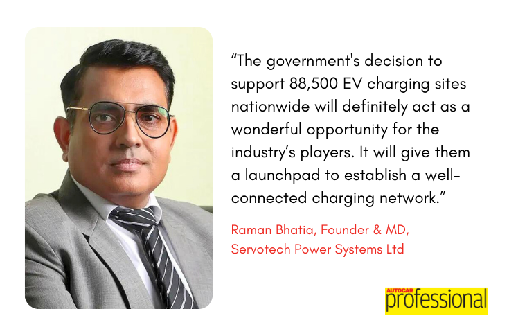 Raman Bhatia, Founder & MD, Servotech Power Systems Ltd., said apart from addressing concerns like environmental pollution, and fuel security, thie PM E-Drive scheme will speed up the process of generating employment opportunities including in EV manufacturing and the establishment of charging infrastructure.