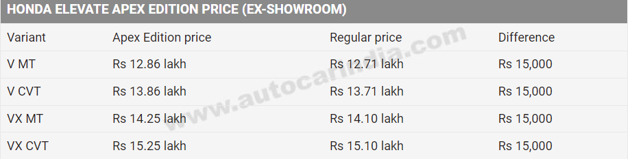 Here’s a look at the detailed price list of the Elevate with the Apex Edition package: