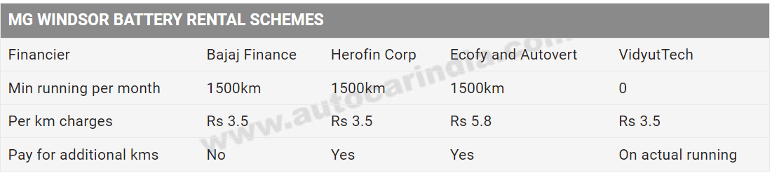 Currently, MG has onboarded four financiers, which include Bajaj Finance Limited, Herofin Corp, VidyutTech Services Private Limited and Ecofy and Autovert Technologies Private Limited. Each of these financiers offer their own rental packages and rates. A customer can opt for their desired package depending on their usage, and there are different time periods as well, such as a 3-year plan or a 5-year plan.