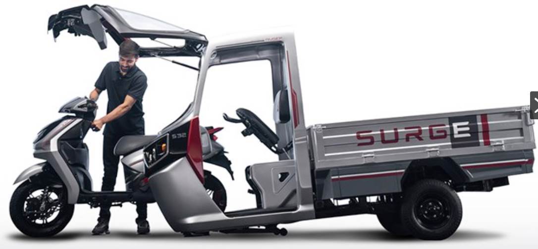 What makes the Surge 32 EV unique is that it is designed to quickly and conveniently convert between a two-wheeler and a three-wheeler.