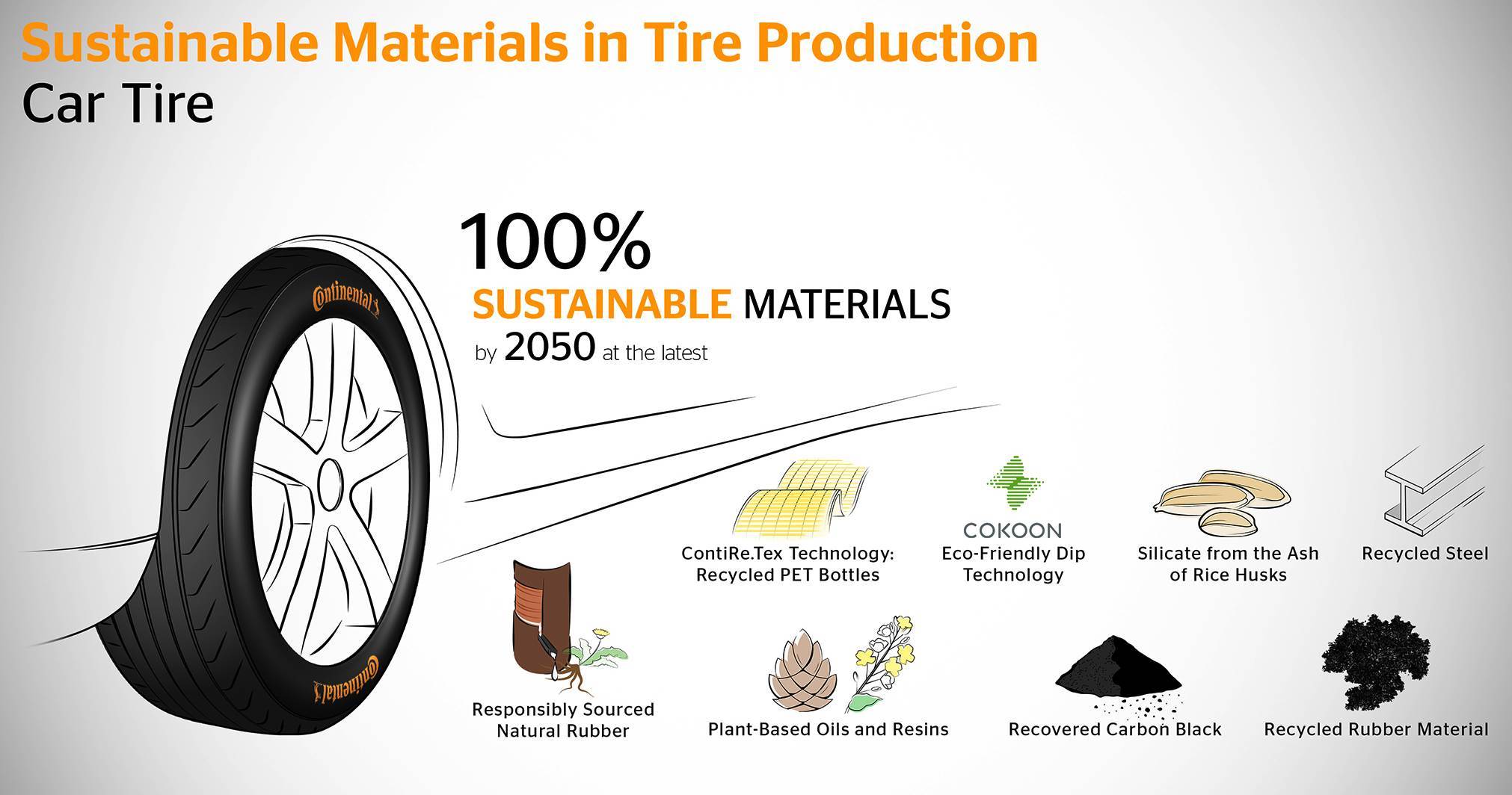 Continental states that it is working hard to replace as many raw materials as possible with sustainable alternatives in production. By 2030, the tyre manufacturer wants to use more than 40 percent renewable and recycled materials in its tyres. By 2050 at the latest, all new Continental tires will be made from 100 percent sustainable materials.