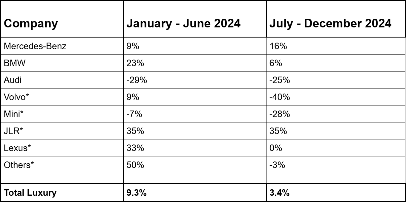 Mercedes-Benz India and BMW India achieved record sales totals, while Audi, Volvo, and Mini reportedly experienced double-digit declines in annual sales due to macroeconomic headwinds and supply-side challenges. Jaguar Land Rover and Lexus, however, maintained their double-digit growth in 2024.