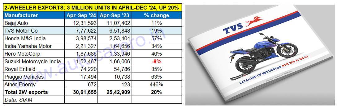 TVS EXPORTS UP 19% TO 777,622 UNITS IN APRIL-DEC 2024