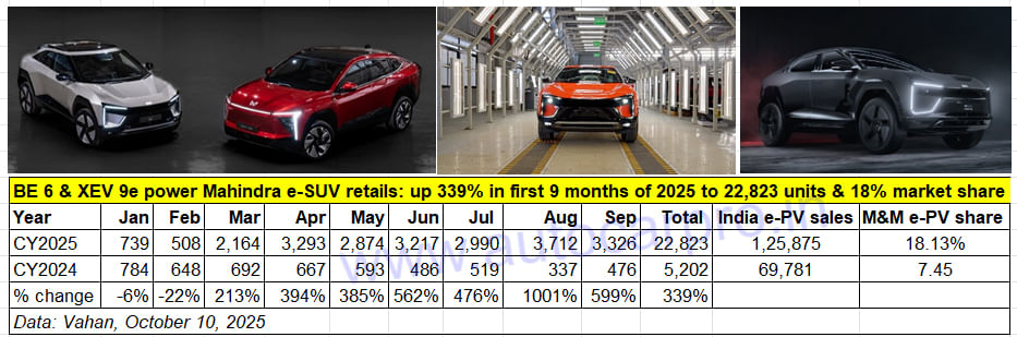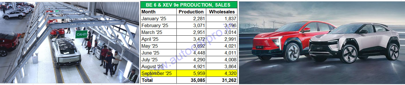 .Cumulative wholesales for January-September at 31,262 units sees them account for a 6% share of the company’s record SUV wholesales of 446,697 units, up 16% YoY (January-September 2024: 386,310 units). September’s 4,320 units are the best monthly score yet and mark the fourth month (after May, June and July) that Be 6 and XEV 9e dispatches have crossed the 4,000-unit mark. Dispatches to M&M dealers in August were restricted to 3,864 units as a result of strategic inventory management ahead of the planned GST rate cut, which was announced on September 3.