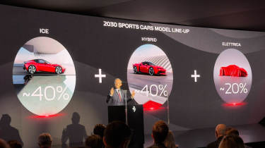 But at the same time, Ferrari is now saying that 20% of its line-up will be EVs by the end of decade, which is down from the 40% previously quoted. Alongside the EVs, 40% will be hybrids and the other 40% will be pure-petrol. Earlier this year, reports suggested Ferrari wouldn’t launch a second electric model until at least 2028, due in part to weak demand.