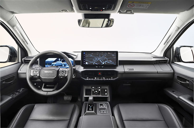 Inside, the cabin has been completely overhauled and now shares interior bits with newer Toyota models like the Land Cruiser Prado and the Land Cruiser FJ. The dashboard layout is upright and geometric, combining digital sophistication with Toyota’s trademark durability. It features twin 12.3-inch screens complemented by physical buttons for climate and 4WD controls. The new Hilux also gets over-the-air update capability, wireless phone charging, rear USB ports and a wide suite of Toyota Safety Sense features such as blind spot monitoring, Safe Exit Assist and Emergency Driving Stop System.