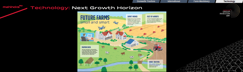 Looking toward future revenue streams, Mahindra identified technology as the “Next Growth Horizon,” aiming to democratize advanced solutions for farmers globally.