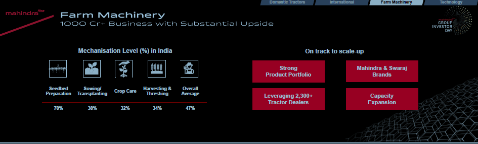 This technological focus ensures that even as Mahindra leverages its massive network of over 2,300 tractor dealers to scale its Farm Machinery business—a sector identified as a ₹1,000 crore business with substantial upside—the core focus remains on evolving the tractor itself. The extensive dealer network provides a crucial channel for distributing both its traditional and next-generation tractor lineup and specialized farm machinery offerings under the Mahindra and Swaraj brands