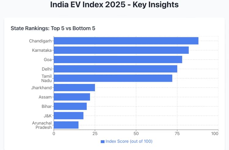The index, which assessed 31 Indian states and union territories for the second consecutive year, found that the ratio of electric vehicles to public chargers increased sharply from 12:1 in 2024 to 20:1 in 2025. This indicates that vehicle adoption is accelerating faster than charging infrastructure deployment.