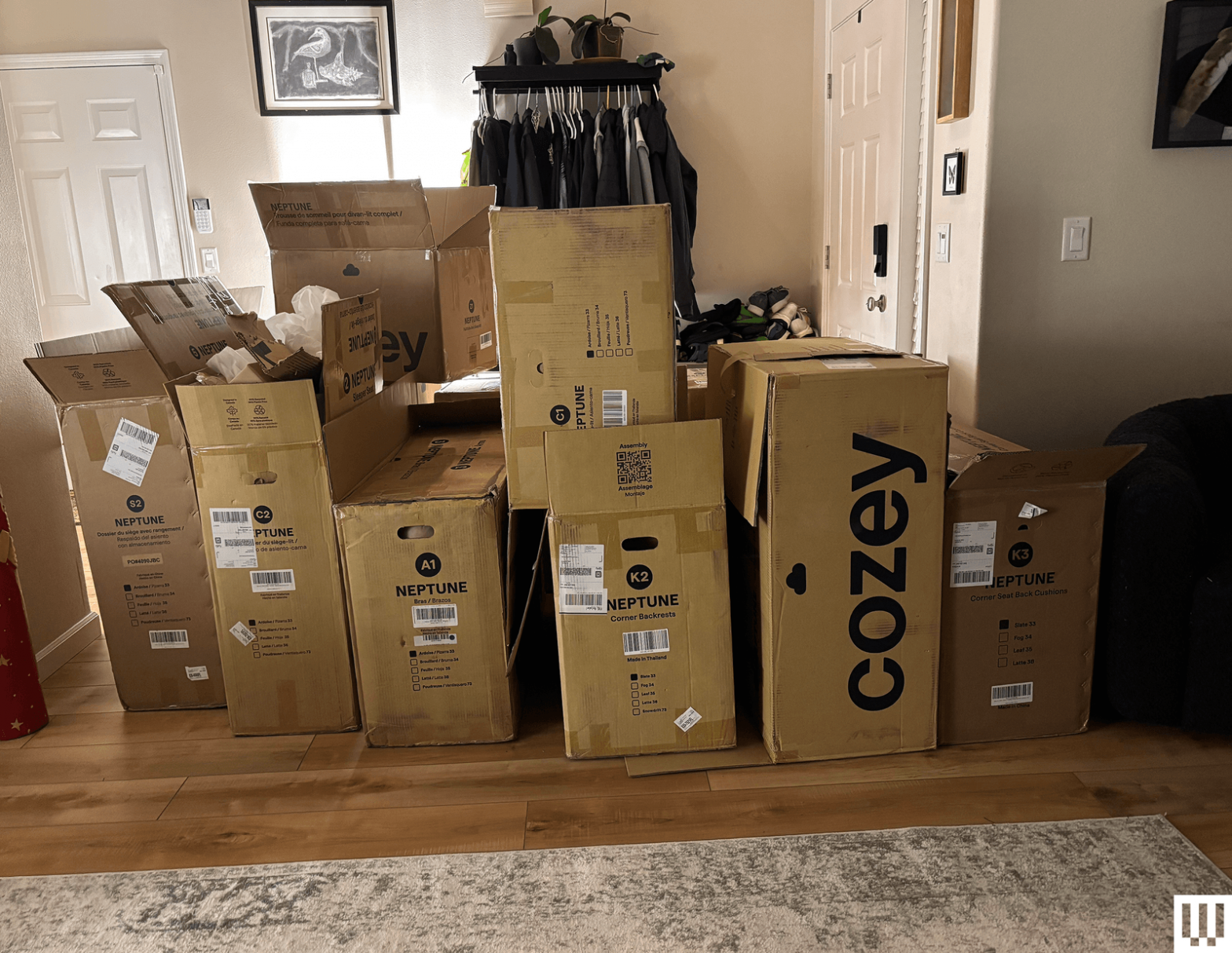 The last couch I tested, from Interior Define, took almost four months to arrive, but a couple of months is pretty typical for made-to-order furniture. Mercifully, the Neptune—which I’ve now been testing for almost six weeks—arrived in four days via free FedEx shipping, in 13 unwieldy boxes. An average-sized, 5’6″ woman, I had no problem carrying each box around the house, but struggled to take some of the heavier ones upstairs by myself.