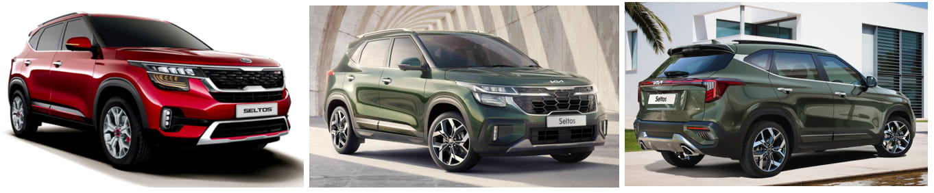 The first-generation Seltos was followed by a facelifted model in July 2023 (centre) and a year later by a refreshed avatar.