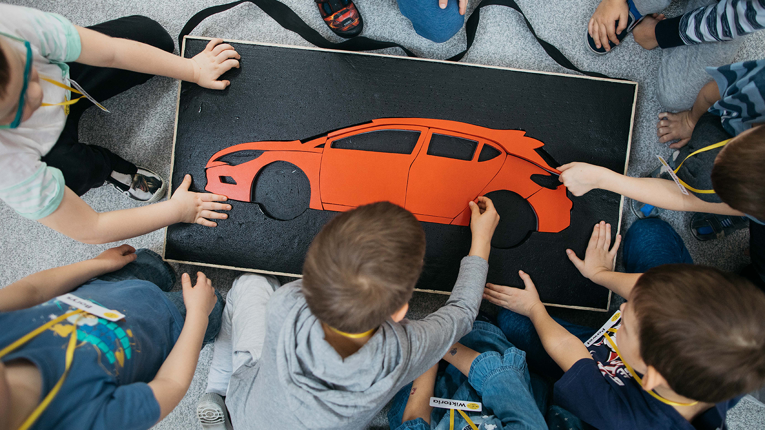 Kydy jedna połowa grupy dyskutuje o motoryzacji, druga jest już po szybkim szkoleniu dotyczącym zasad bezpiecznej pracy. Dzieci, podzielone na dwa mniejsze zespoły, pod okiem Mirka i Dawida kombinują przy swoich stanowiskach, jak z rozłożonych na stole części zbudować samochód. A to never lada wyzwanie, ponieważ części jest mnóstwo, mają przeróżne kształty i rozmaite otwory. Wtedy z pomocą przychodzi instrukcja budowy pojazdu. Podobna do tych, które można spotkać w fabryce, tylko w prostszej formie.