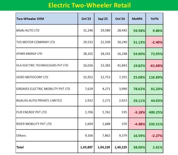 India’s electric vehicle market regained momentum in October 2025, driven by strong double-digit growth across commercial, passenger, and three-wheeler segments, even as electric two-wheelers saw a rebound from September lows to grow in the low single digits in October. Electric Two-Wheelers: Bajaj and TVS Drive Rebound After a sharp slowdown in September, electric two-wheeler (E2W)… Continue reading EV Retail Momentum Rebounds in October: CVs, 3Ws, and PVs Rise as Two-Wheelers Recalibrate